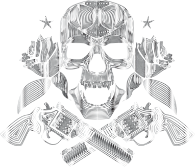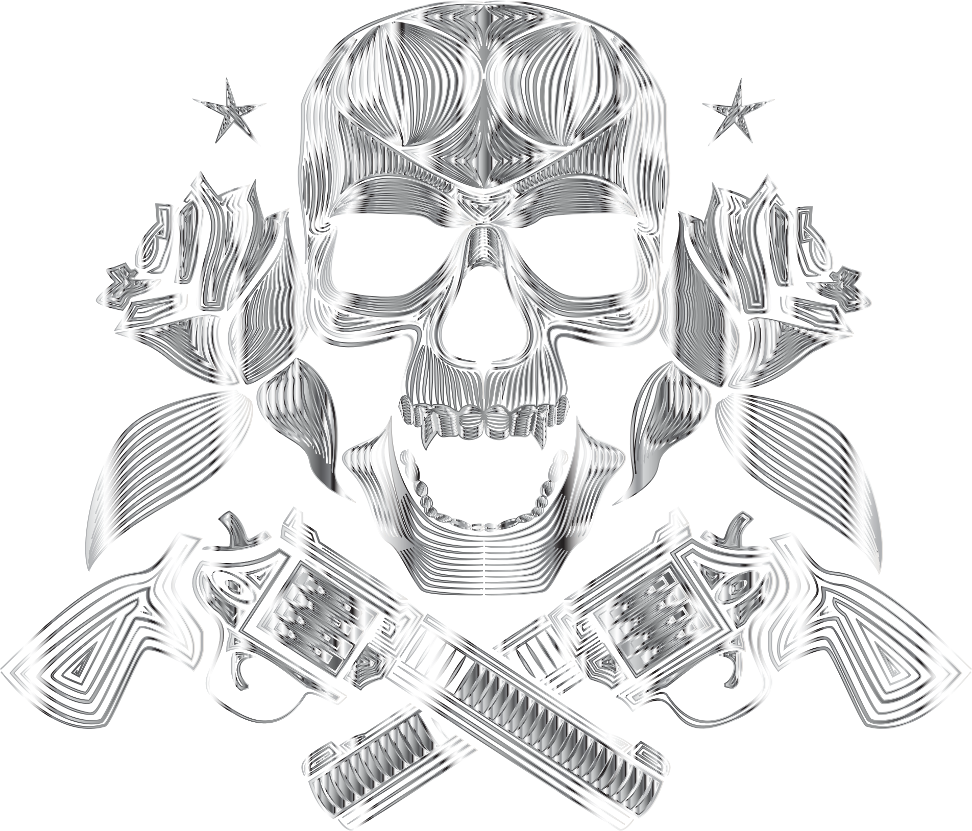 Flowers And Firearms Skull Line Art Polished Chrome No BG