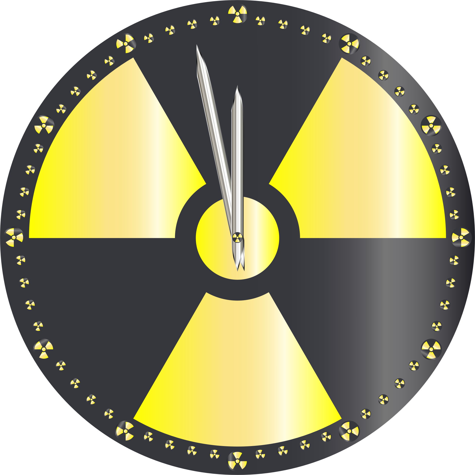 Two Minutes To Midnight. Inspired by https://openclipart.org/detail/250445/yin-yang-clock . Based on https://en.wikipedia.org/wiki/Doomsday_Clock