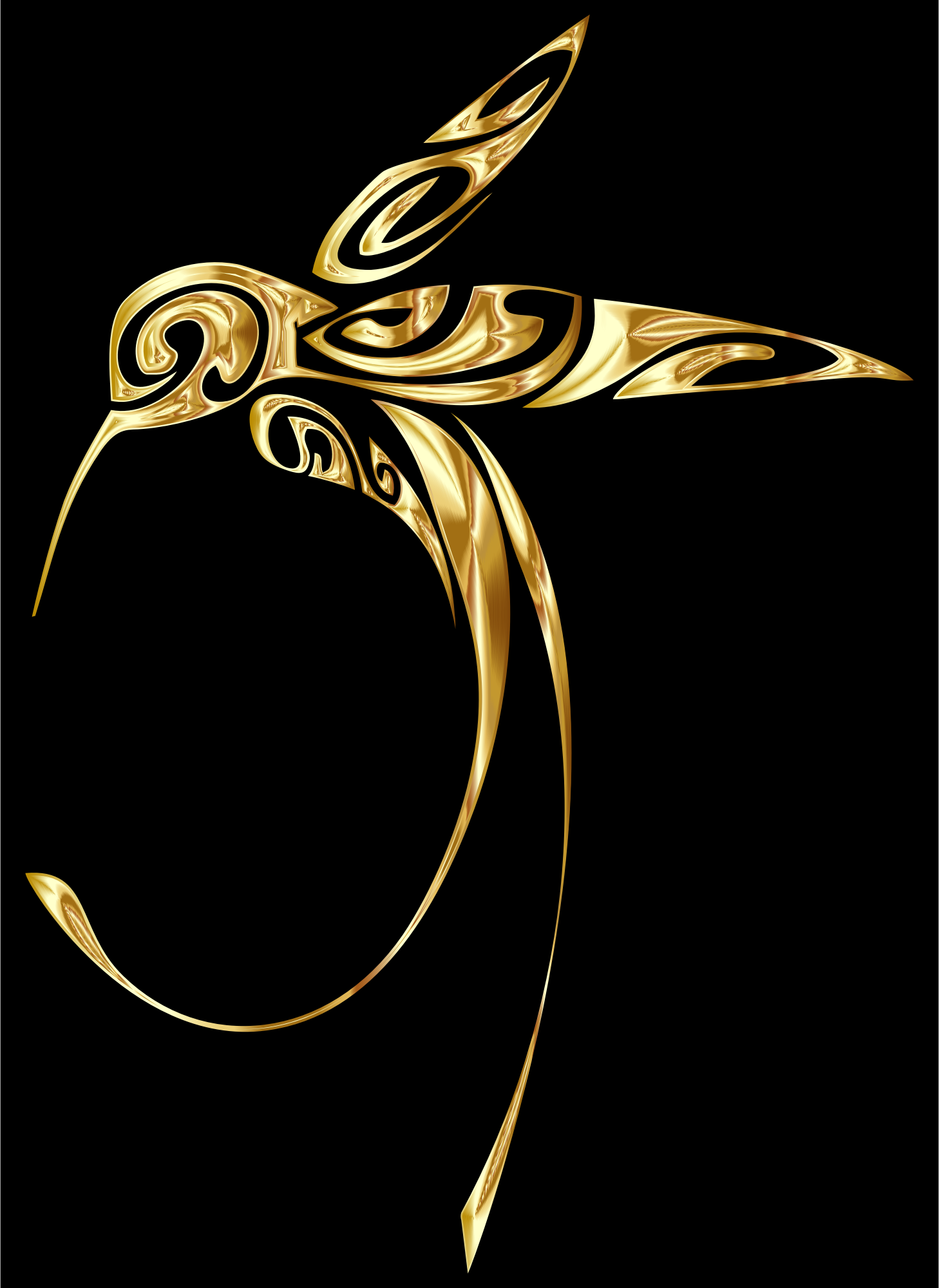 Ornamental Hummingbird Line Art Gold