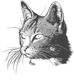 High detailled cat's head, black and white