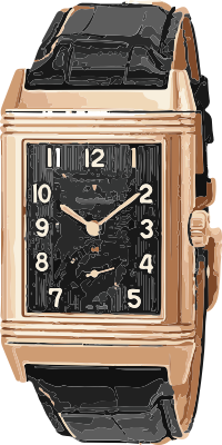 This is a very famous model of a swiss watch in a black leather strap.