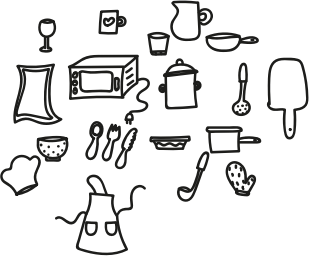 - cooking kitchen item cook hand drawn drawing black white illustration Icons Set