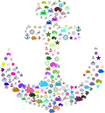 - remix+308767 Nautical Anchor Maritime Sea Ocean Sailing Ship Boat Marine Fish Crab Captain's Wheel Starfish Octopus Animals Hermit Crab Crustacean Lobster Silhouette Abstract Art Colorful Prismatic Chromatic Rainbow