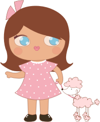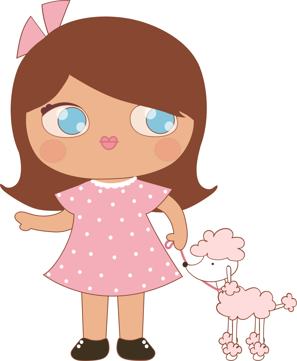 - cute girl doll dog pet poodle walk pink dress hand drawn drawing kawaii pink dress
