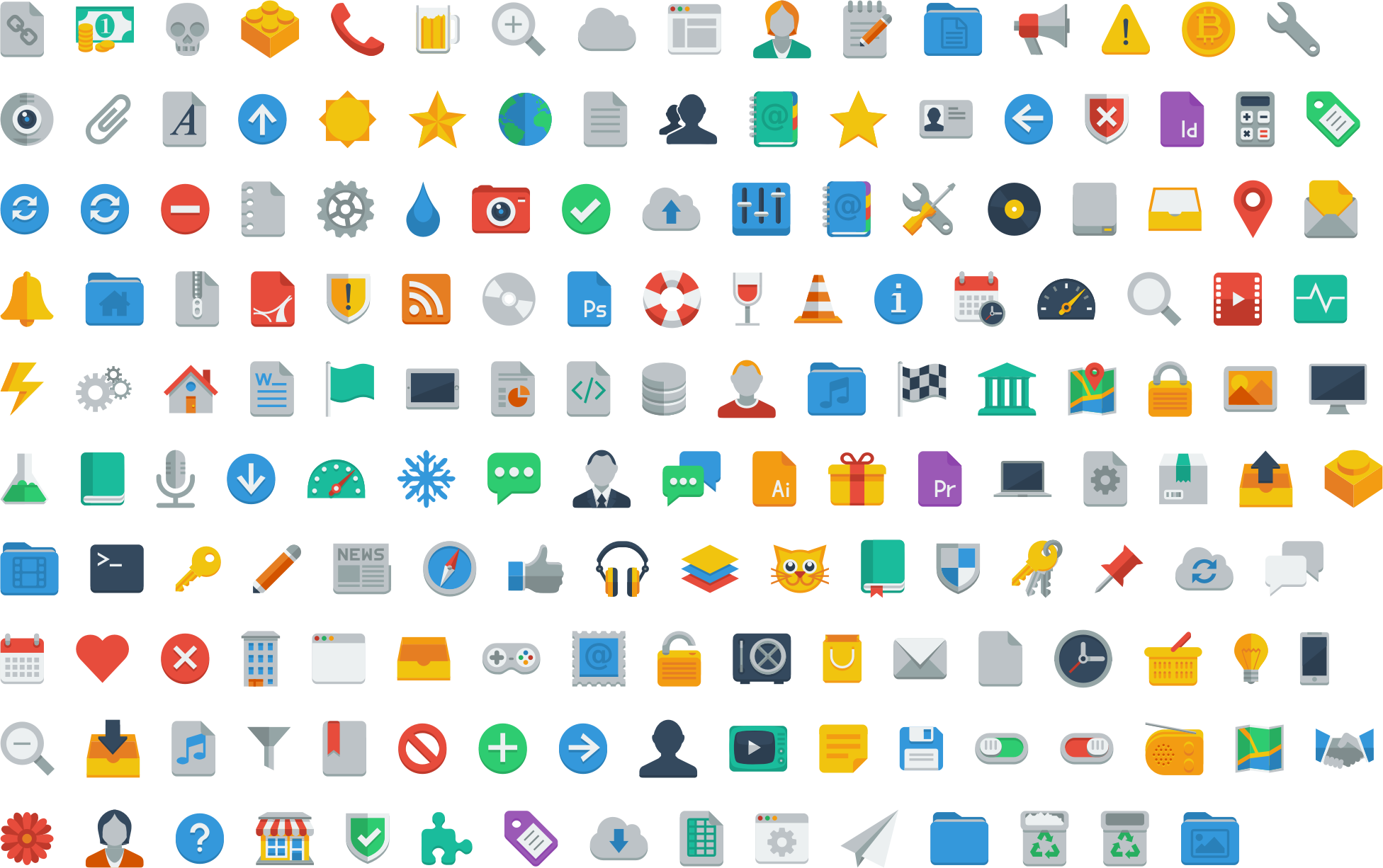 Huge Flat Icons Set from a public domain source.
