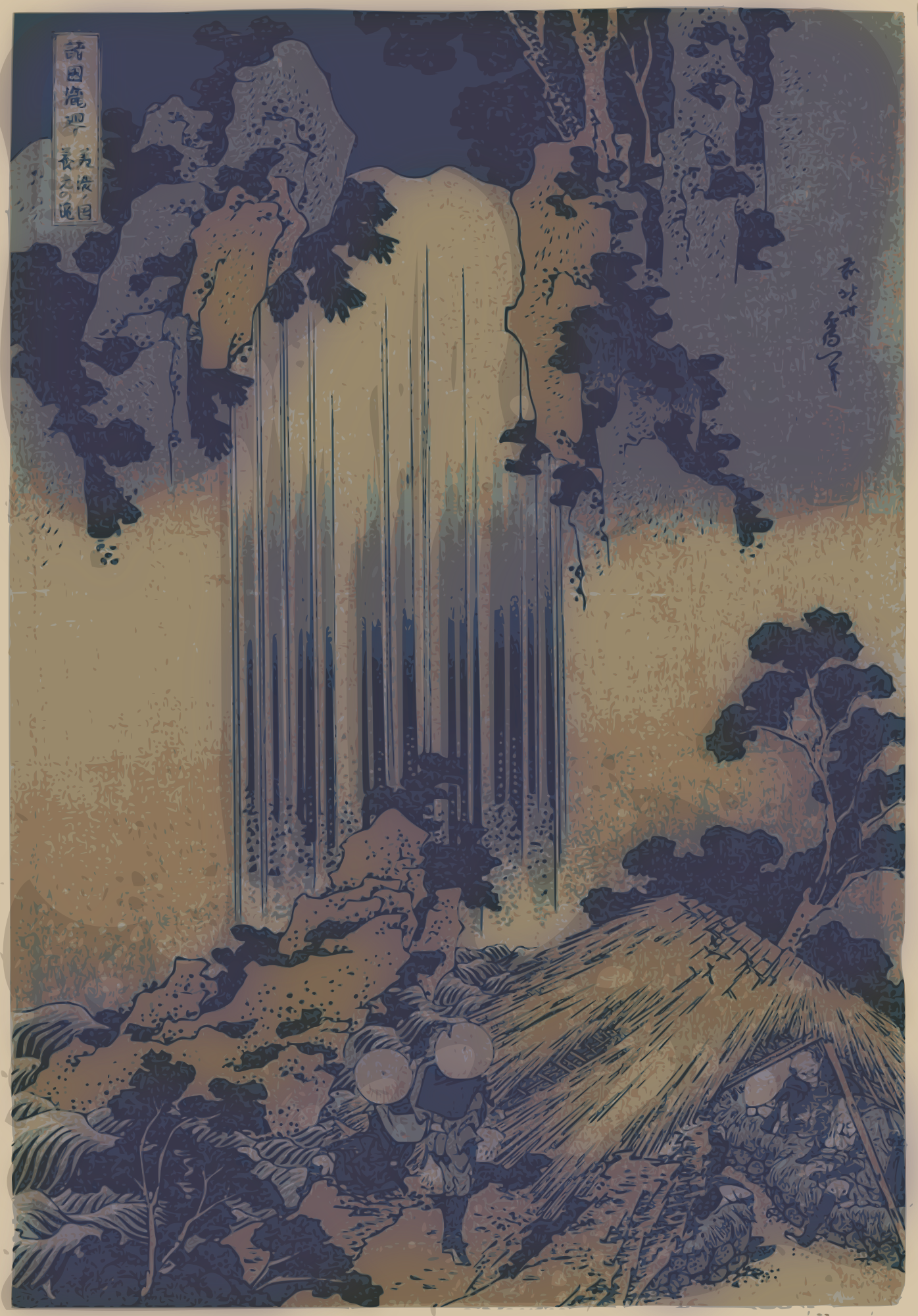 - 1830 1840 falls Hokusai Japan Japanese nature Nichibunken Semi-Realistic People Ukiyo-e waterfall waterfalls wood+block+print