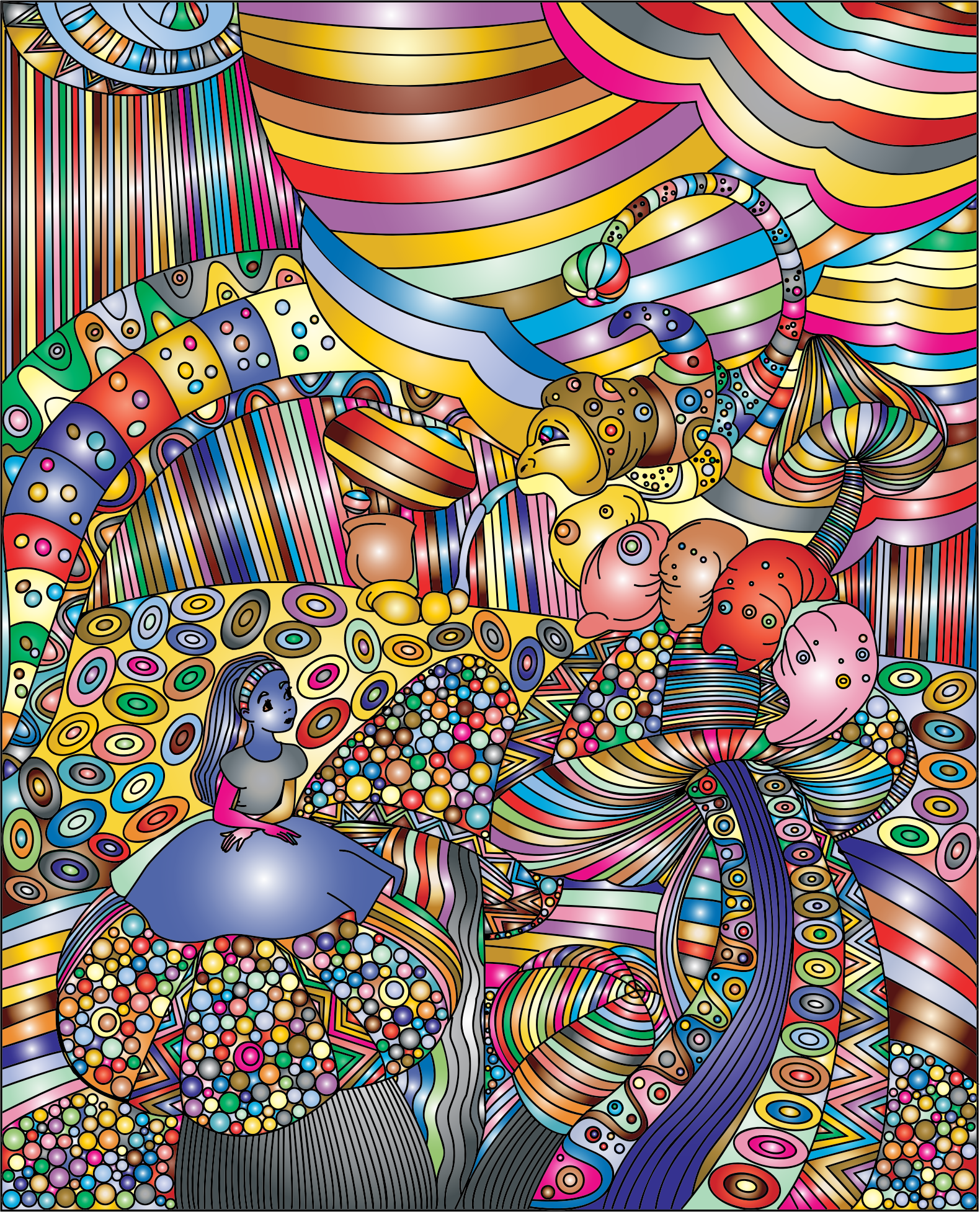 Alice In Wonderland Line Art Prismatic