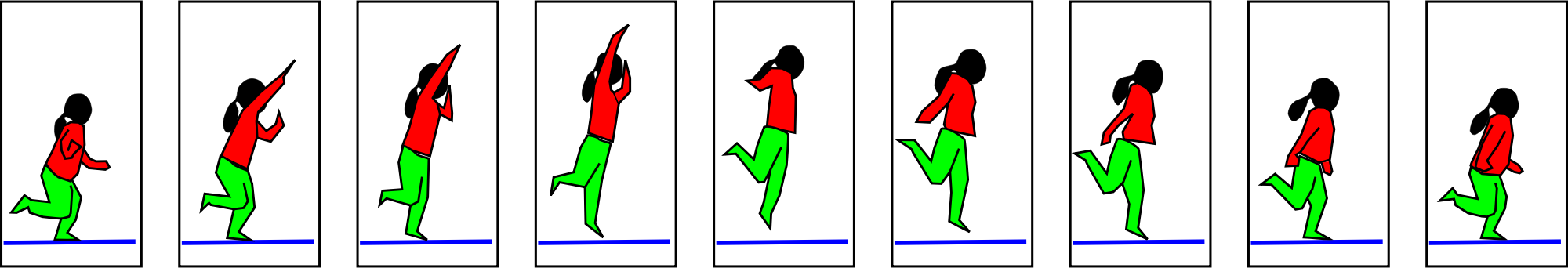 A simple sequence of nine images to capture a hopping motion. CSS animated remix to be uploaded soon...