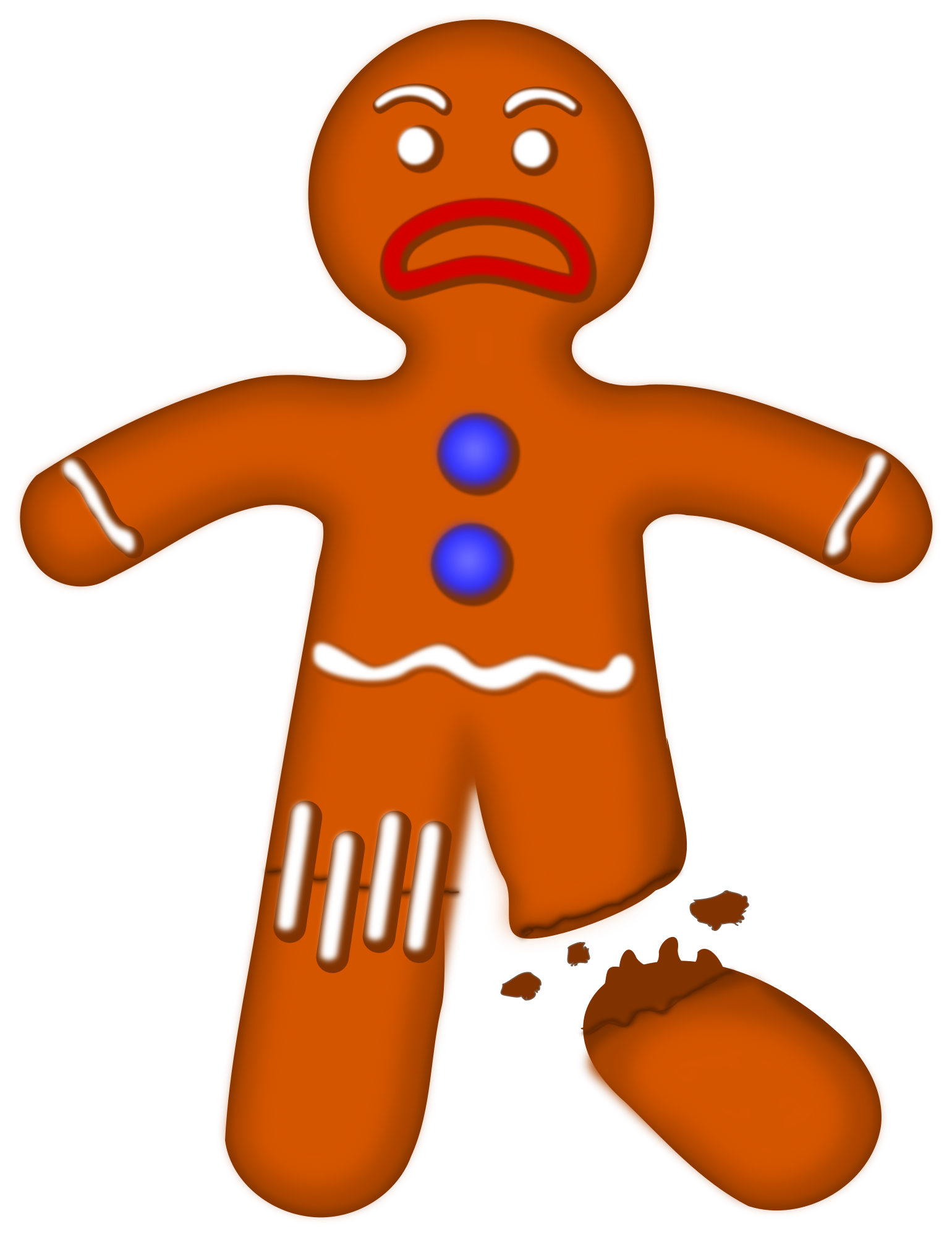 Uh oh. Did someone snap off his foot? In anycase, that's a sad gingerbread man!