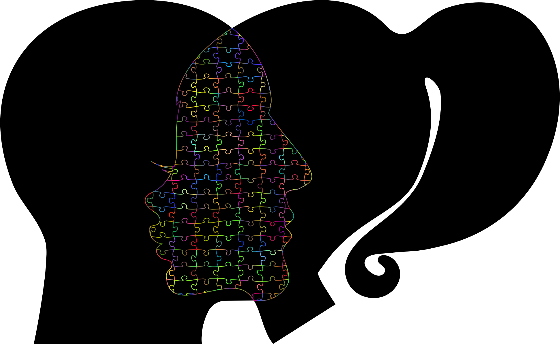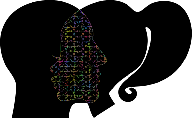 - remix+311957 Cranium Head Human Male Man People Persons Profile Silhouette Female Girl Woman Unity United One Togetherness Combined Abstract Art Jigsaw Puzzle Pieces Game Play Fun Philosophy Wisdom Think Thought Mind Colorful Prismatic Chromatic Rainbow
