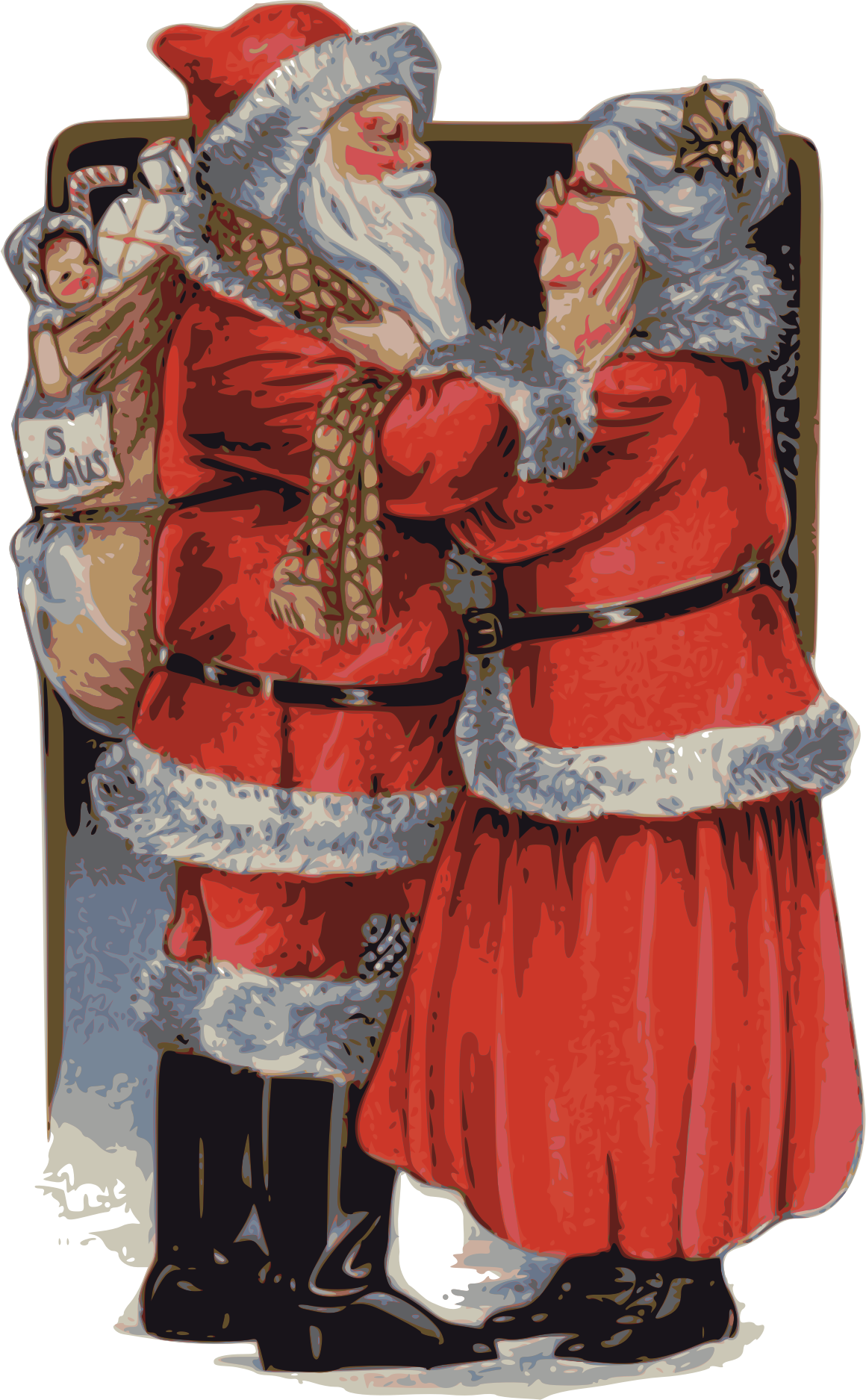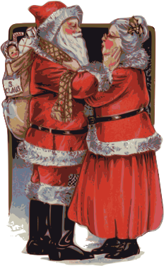 It's a bit weird to think of Santa and his wife being romantic and making out and all that, but this old public domain card inspires those kind of thoughts. Creepy! (This is part of my attempt to plug the "no mrs claus" clipart hole!)