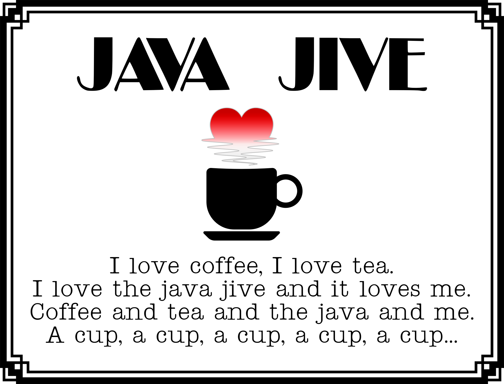 First set of lyrics from the song Java Jive. The coffee steam heart is from an upload by GDJ
