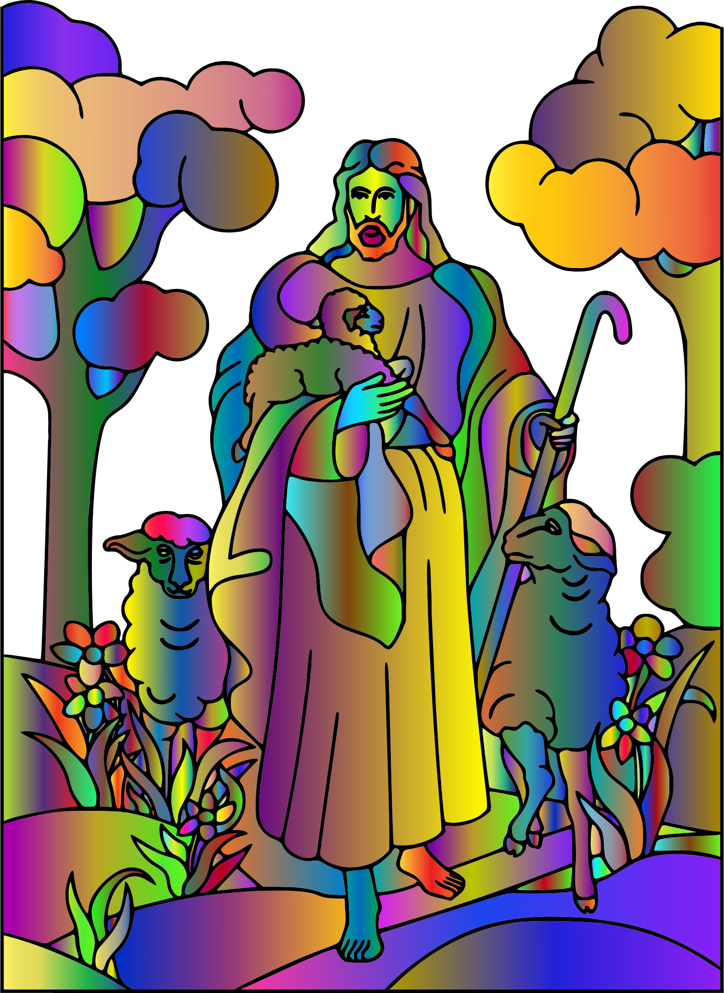 - remix+247236 Bible Gospel Catholic Christ Christian Church Cross Crucifix Divine Faith God Holy Jesus Lambs Line Art Messiah Prayer Religion Sheep Shepherd Spirituality Colorful Prismatic Chromatic Rainbow
