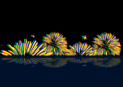 Fuochi artificiali lanciati sulla costa e visti dal mare; forse un isola o una barca.