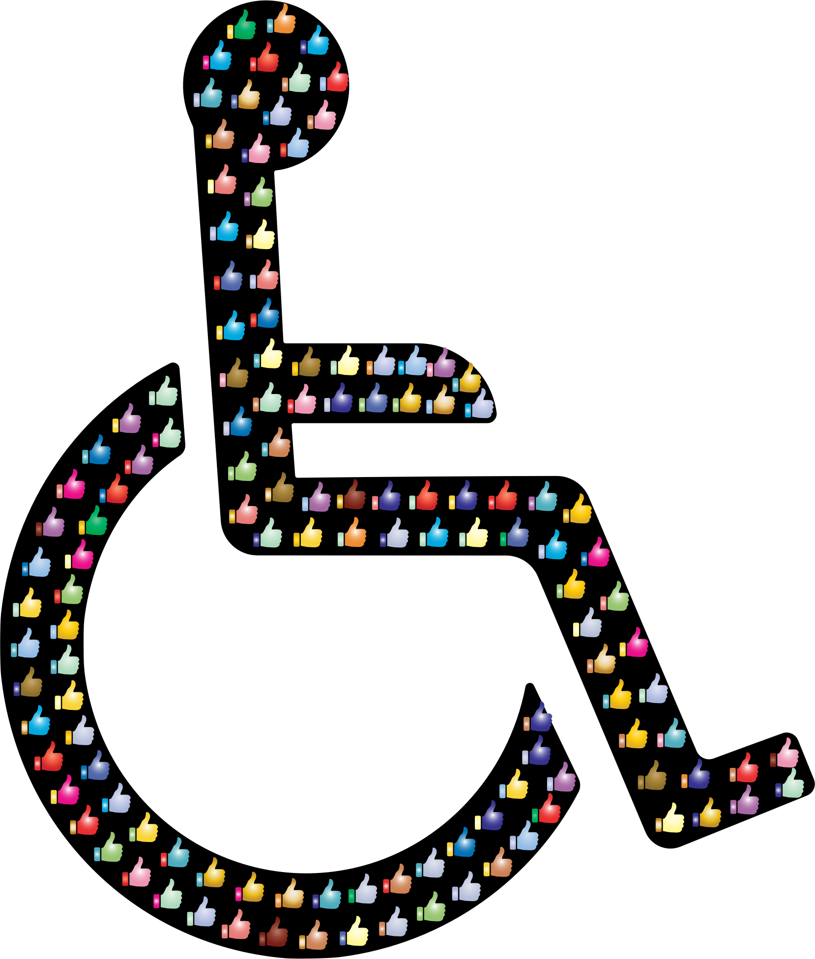 - remix+312698 remix+238911 Wheelchair Disability Handicapped Boy Health Illness Male Man Medical Sick Silhouette Transportation Vehicle Human People Person Icon Agree Approve Condone Encourage Facebook Gesture Hand Like Thumbs Up Colorful Prismatic Chromatic Rainbow