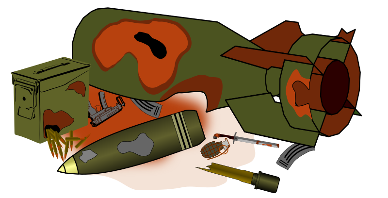 Contents of some weapon cache with weapons and ammunition - now rusty and broken but still possibly dangerous for anyone who finds it.
