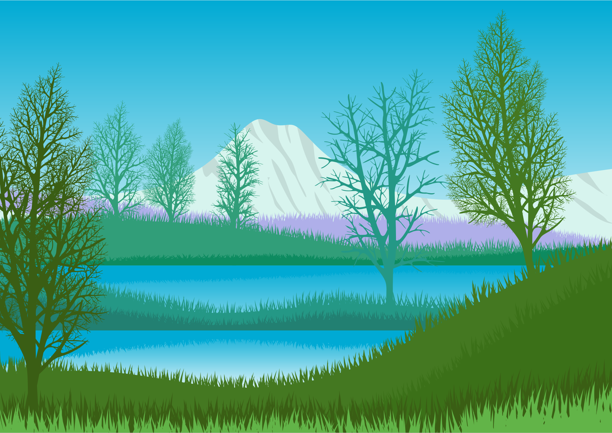Natural landscape with trees, trees and lake