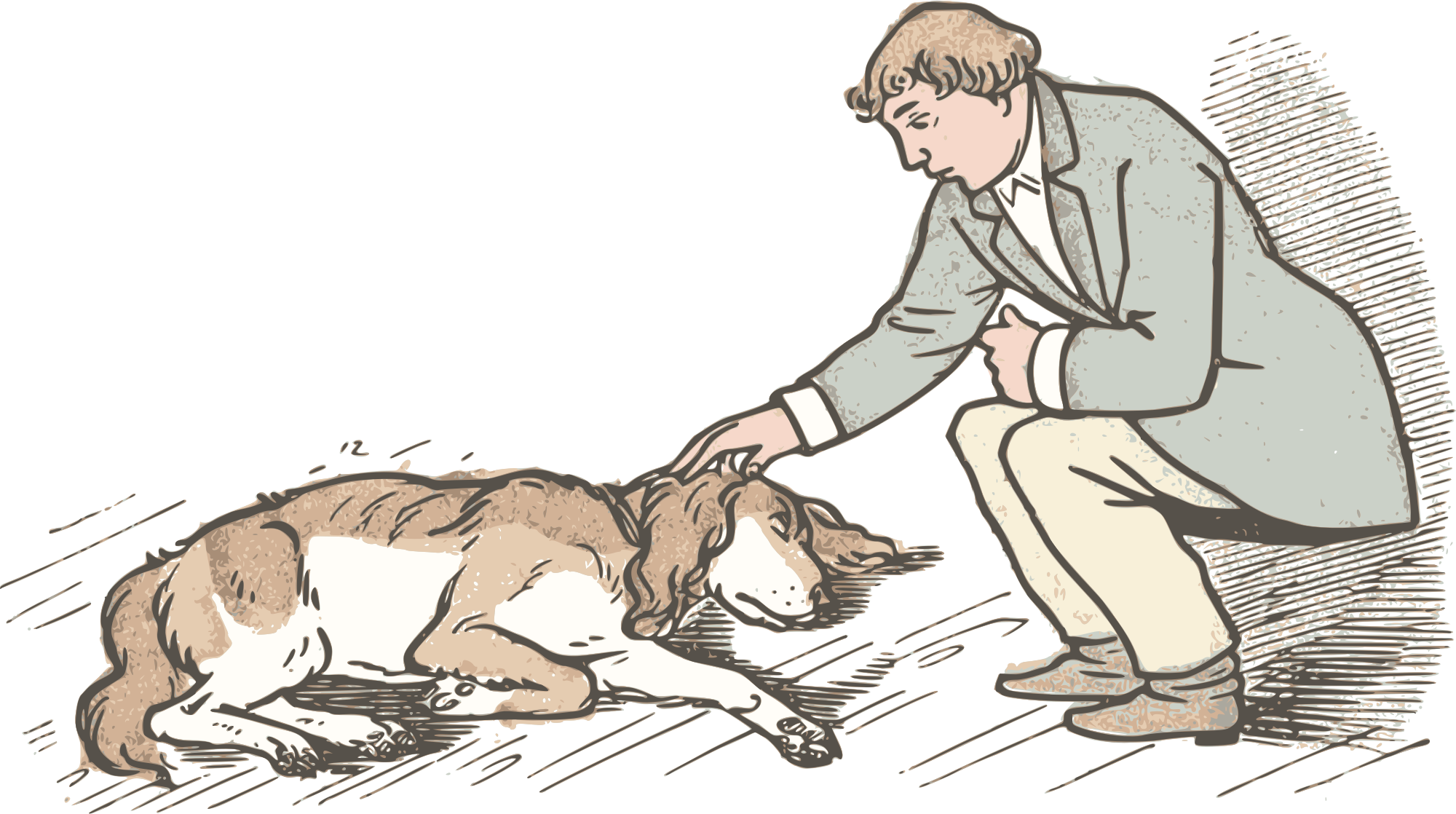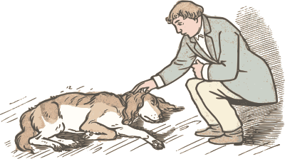 - 1920 bloke Comic characters dog drawing German guy Lothar male man Meggendorfer pet petting retro sleep sleeping suit vintage