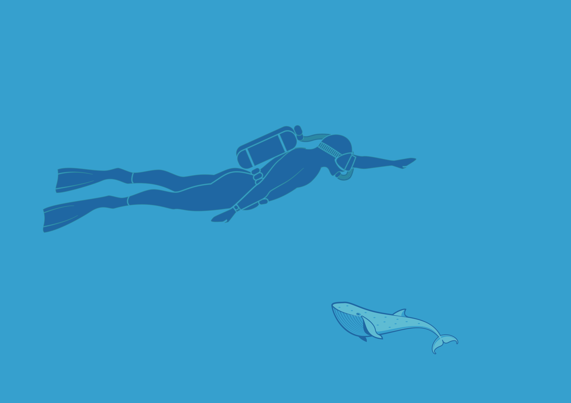 Visione prospettica tra un sub e una balena.