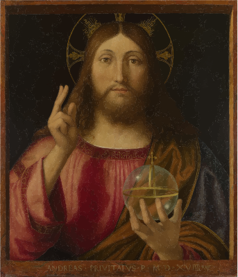 - Salvator Mundi Savior Of The World Jesus Christ Divine Faith God Holy Messiah Prayer Catholic Christian Church Cross Crucifix Religion Spirituality 1519 Andrea Previtali Painting Medieval Art Silhouette Source+Wikimedia Vintage