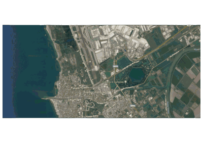 Reconstruction, planimeters and satellite view of the ancient port of Trajan.