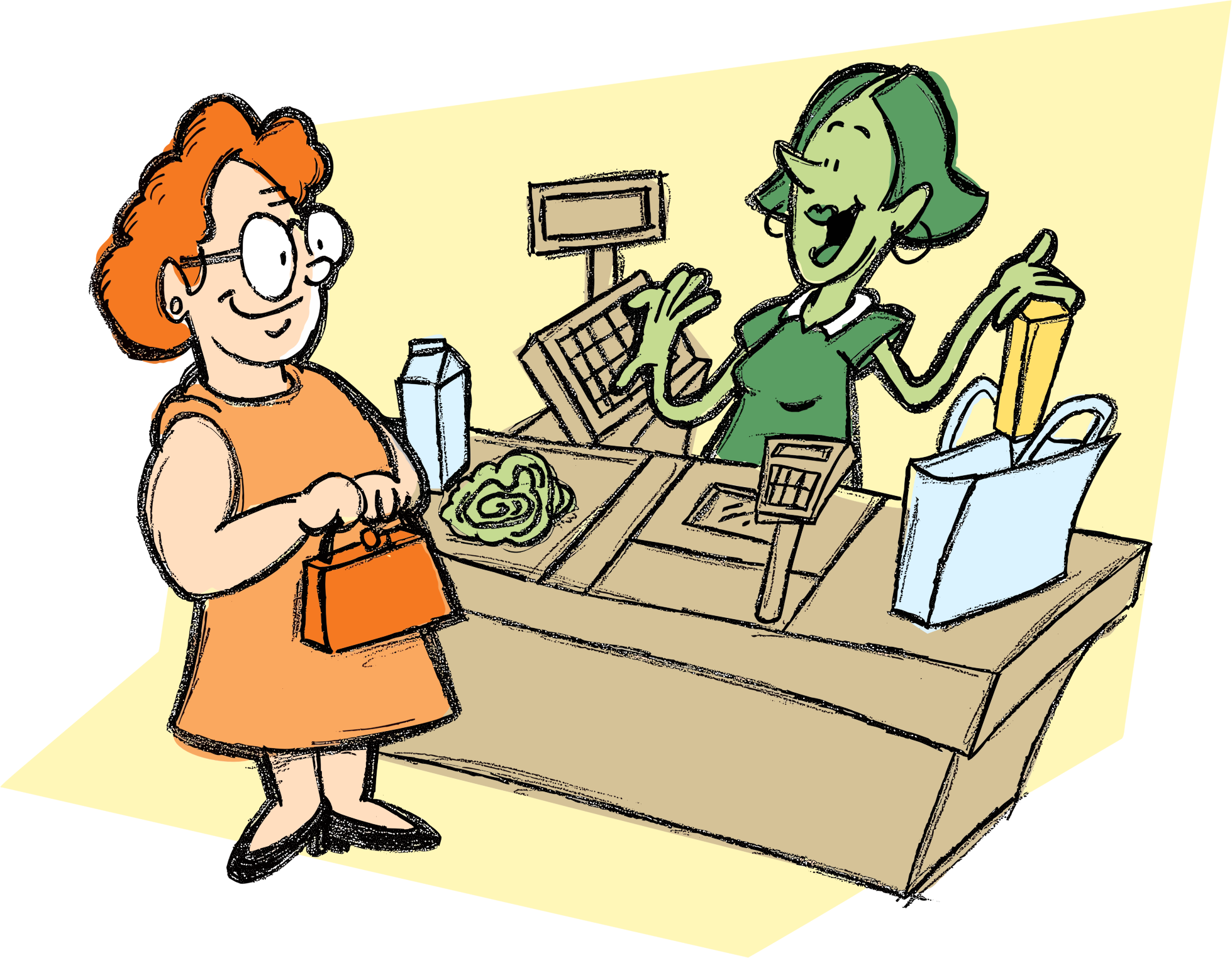 Woman And Cashier By richardsdrawings from Pixabay.