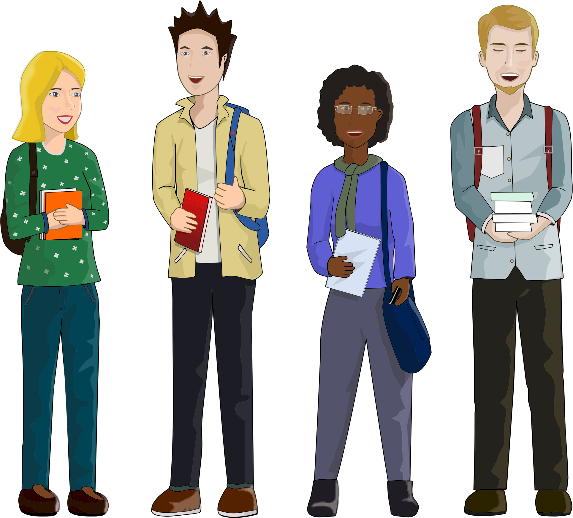 - Boys Cartoon College Comic Comic characters Education Females Girls Humans Learning Males Man Men People Person School Source+Pixabay Students University Woman Women diversity smile happy students