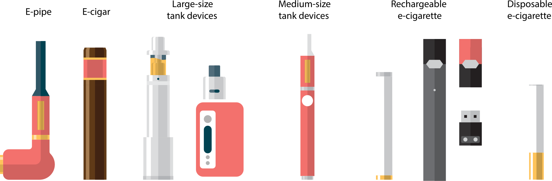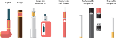 - Variety Collection Set Icons Electronic Cigarettes Cigarette E-Cigarette E-Cig E Cig Vape Smoking Smoke Nicotine CDC Source+Wikimedia
