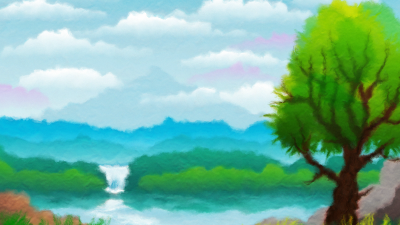 Landscape image with additional filters to add a painted appearance over a grainy paper. Current thumbnail image may look off as it is using an outdated rendering method. Try a current version of inkscape if you are in need of a rasterized version.