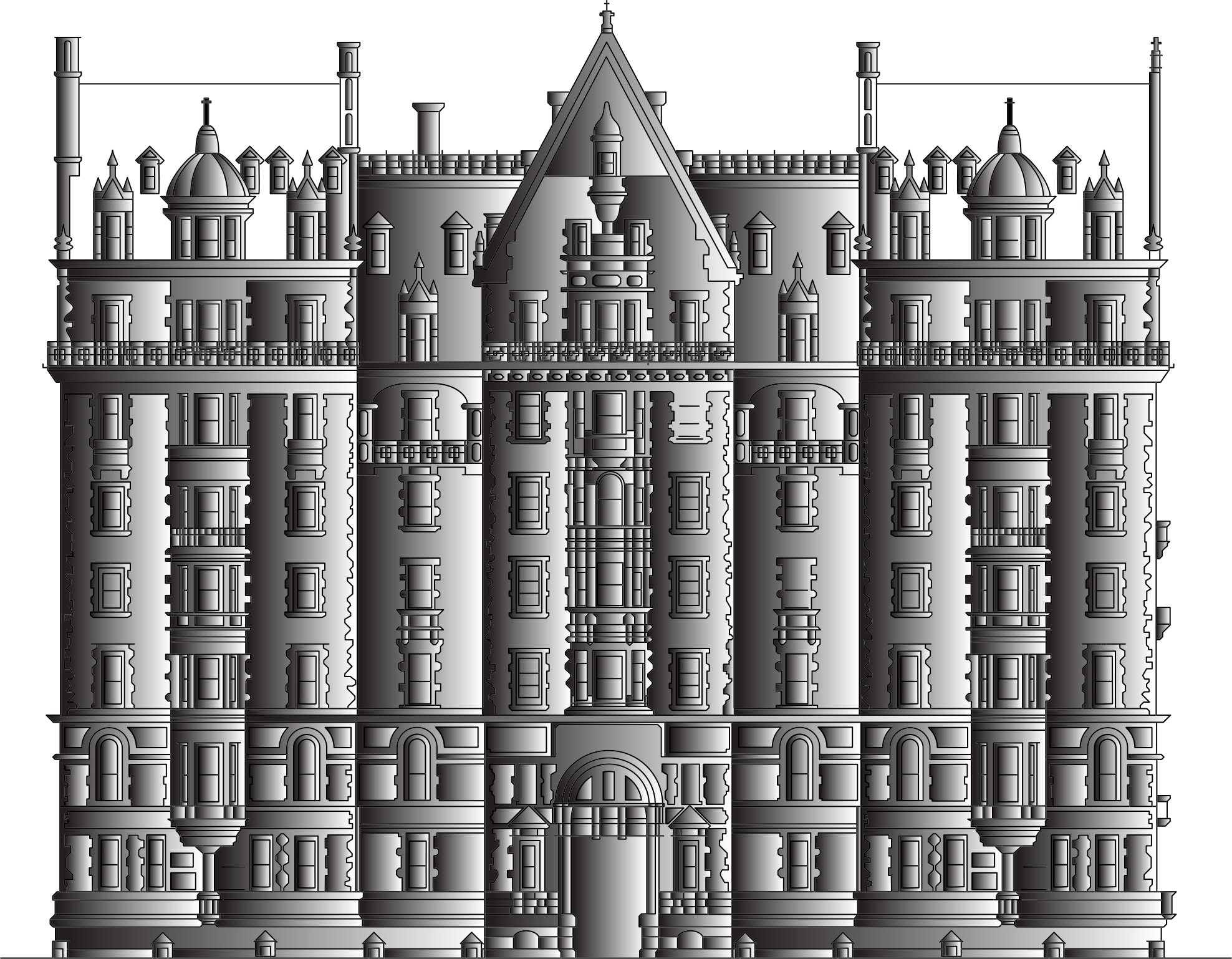 Intricate Building Line Art