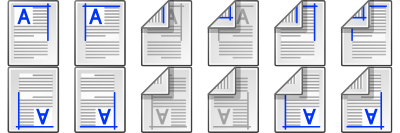 A collections of dozen icons depicting different portrait format print layouts.