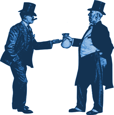 - 1905 black+market blackmail bribe bribery business businessmen cash cigar human_figures illegal man men money money+bag pay+off people retro Semi-Realistic People smoking tophat under+the+table vintage
