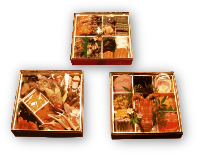 Osechi is a kind of traditional (and pretty expensive if not hand made these days) New Years food eaten in Japan. These three boxes of it are based on a public domain image released way back in 2006 by user Misogi.