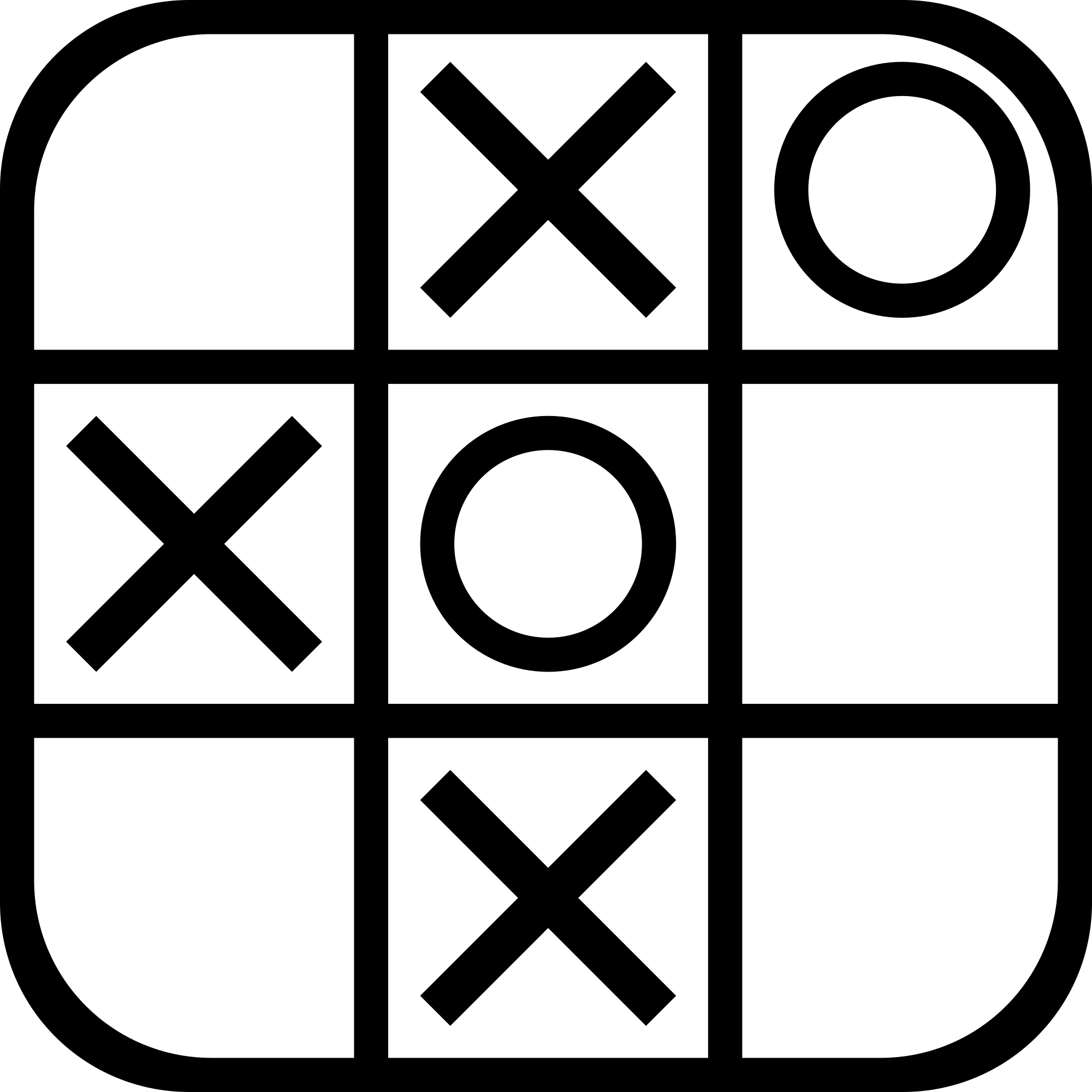 Simple monochrome image of Tic-Tac-Toe. Includes background because it was originally used as an icon for my program.