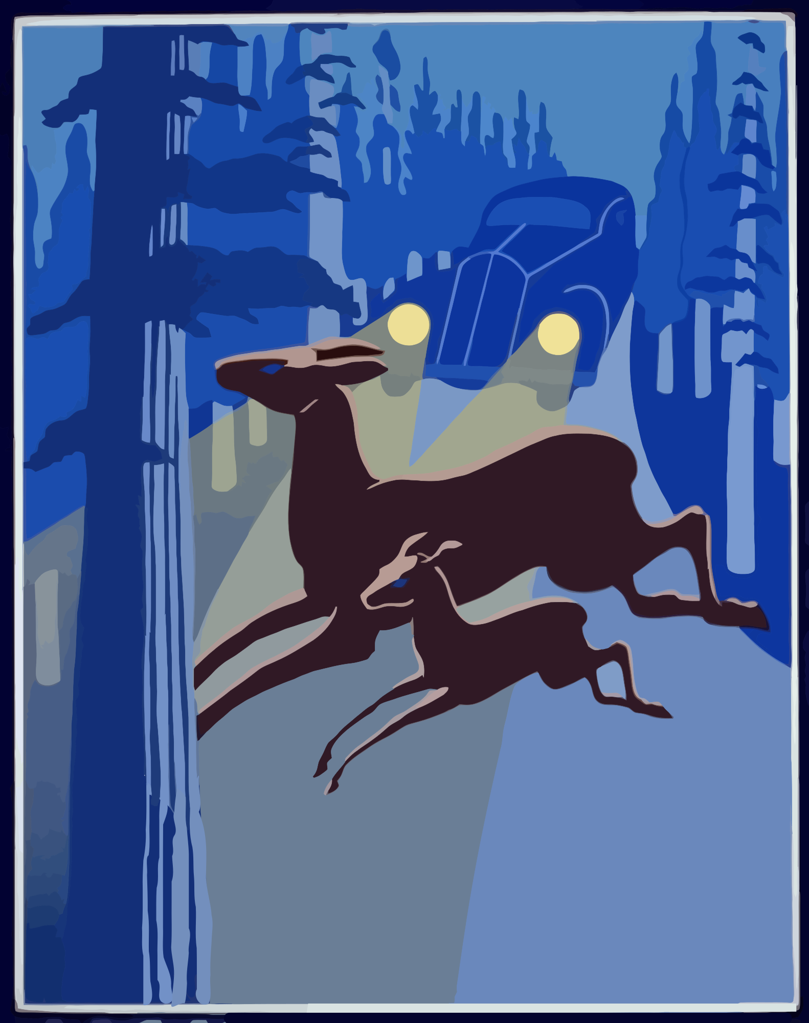 - remix+223898 America Animal Deer Government National+Park Service Poster USA United States Vintage Wildlife wild+life deer headlights driving retro vintage night