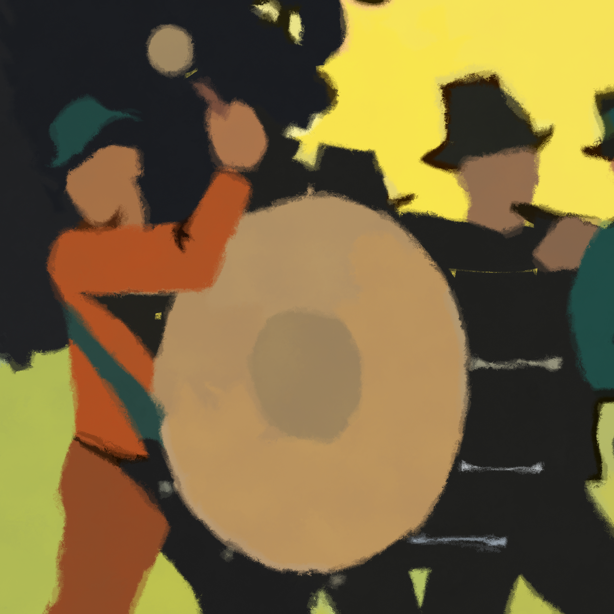 Detail of a larger print with a painted style.