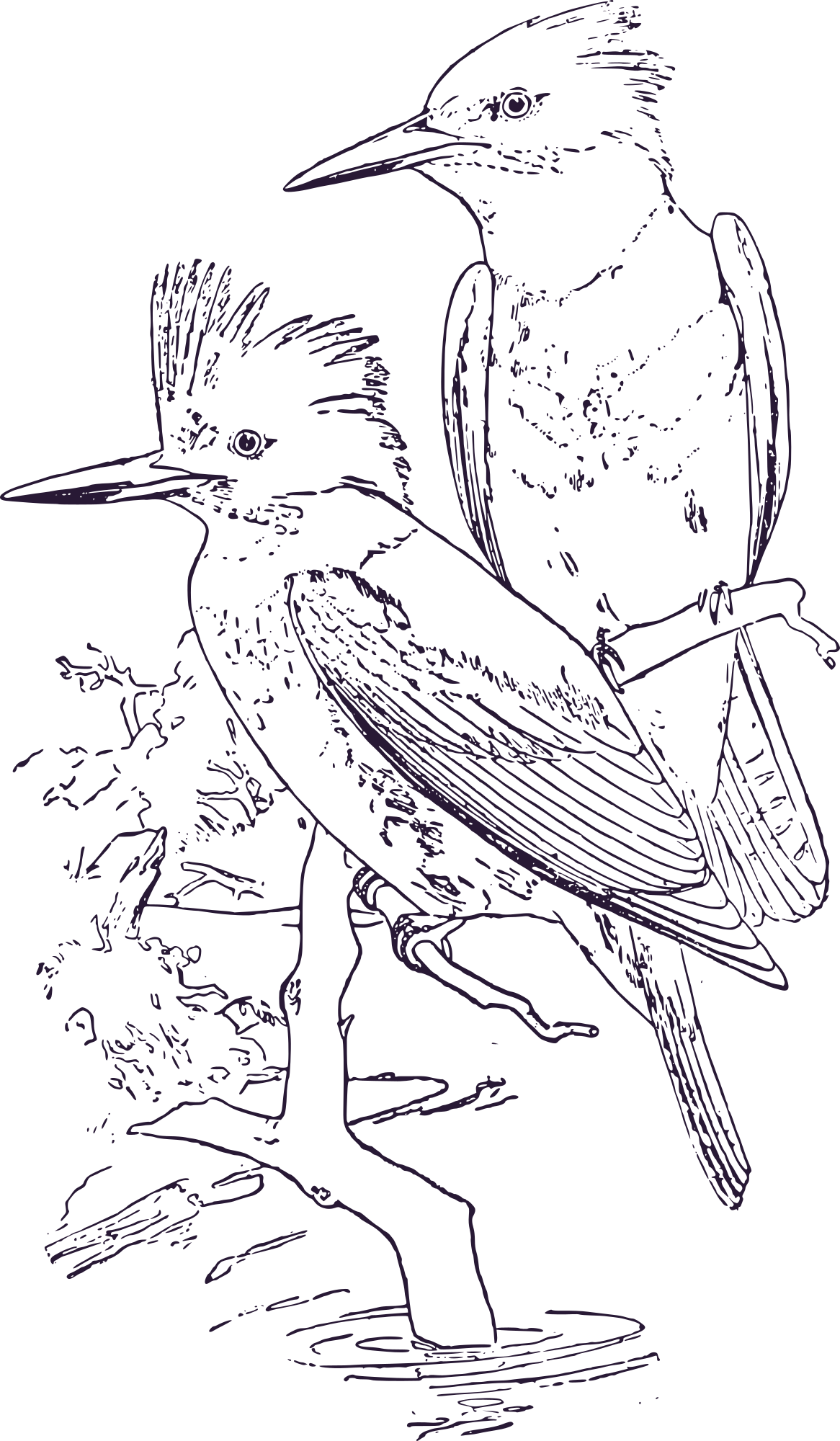 - King+Fisher bird outline drawing sketch thin+lines birds two 1909