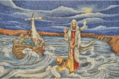 Jesus Saving Fisherman Mural from Pixabay.