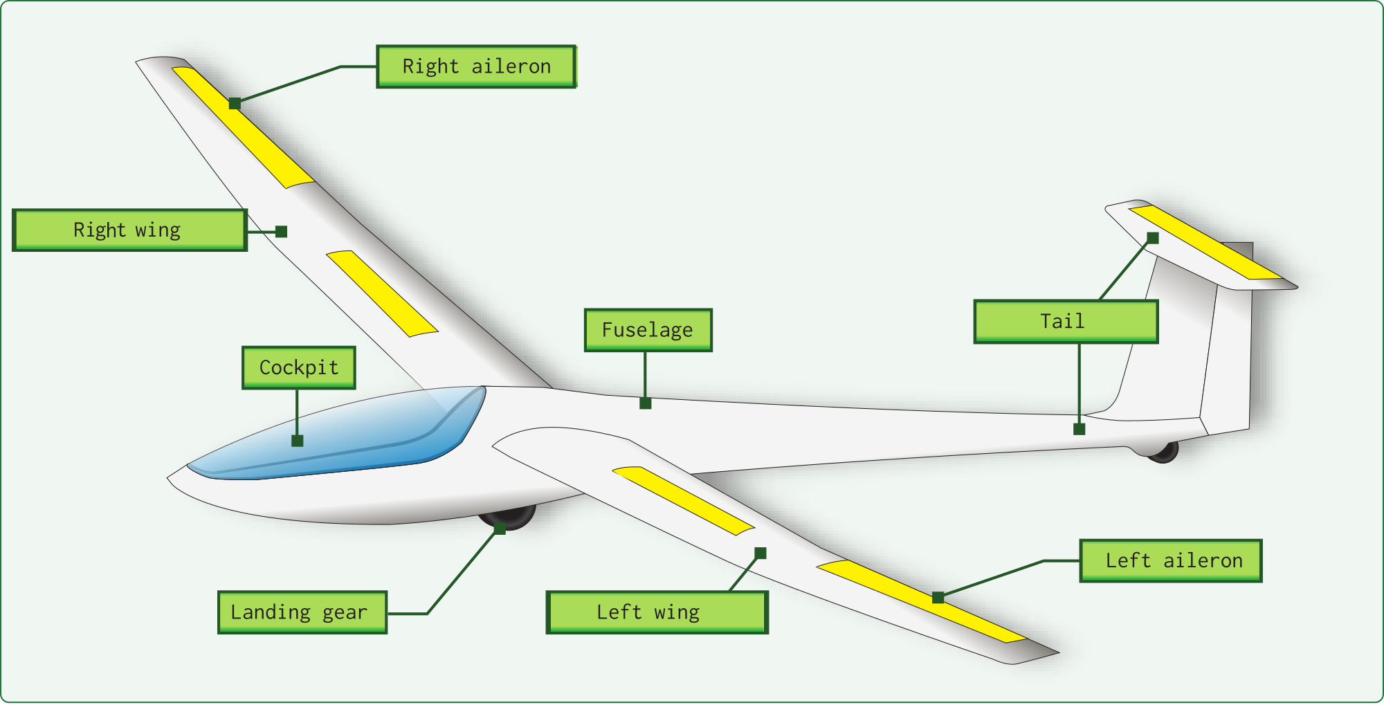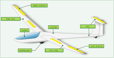- chart diagram components parts name names glider gliding aircraft ESL EFL label English text cockpit wings flight airplane