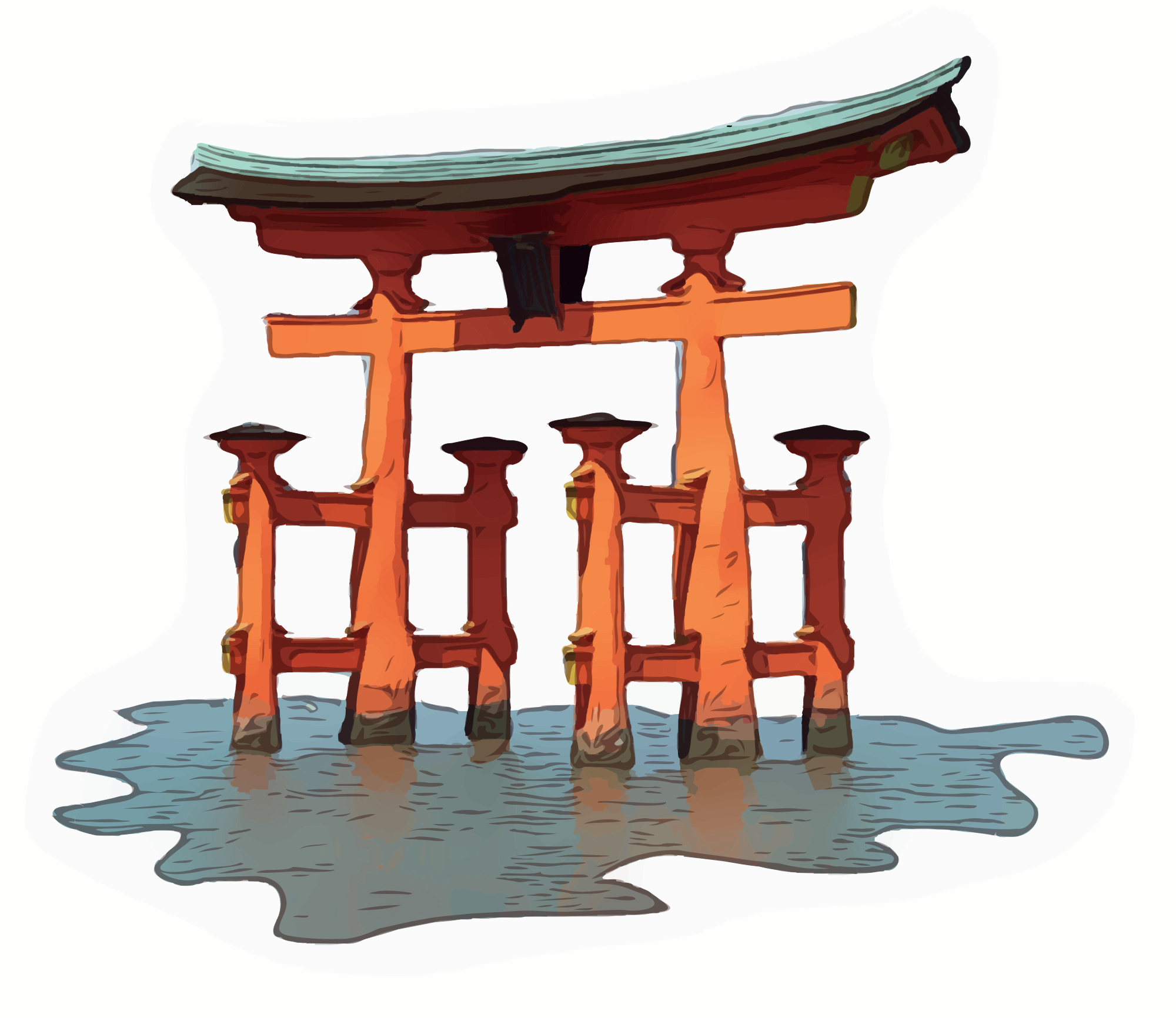 Although commonly known as the "miyajima torii" gate although it is more truly part of the "Itsukushima shrine" (Based on a public domain image fg2 shared with wikimedia.)