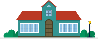 A blue building could be a small school