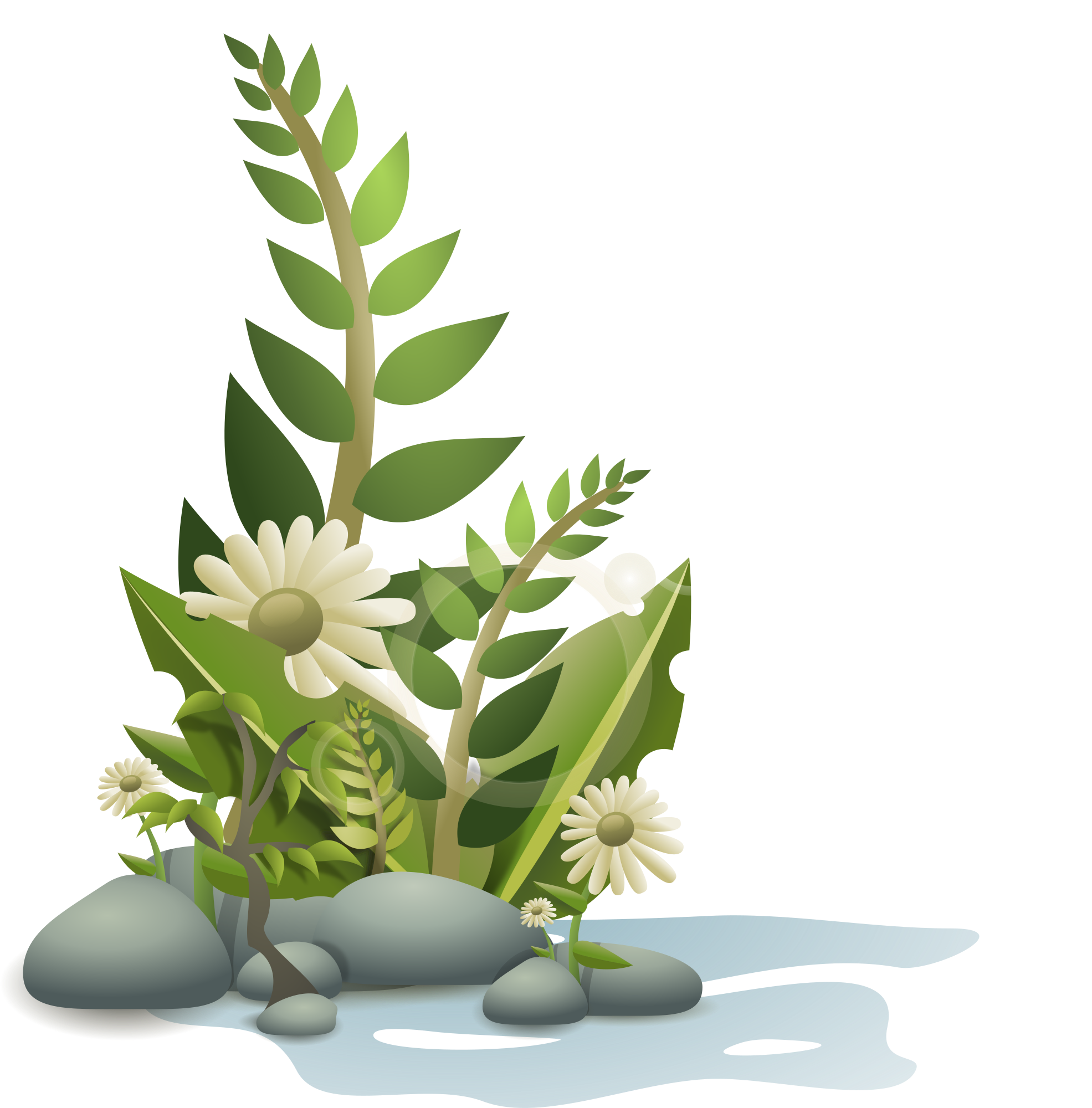 - book drummyfish-awesome fern flower green illustration nature observer_open-clip-art pebbles plant vines water