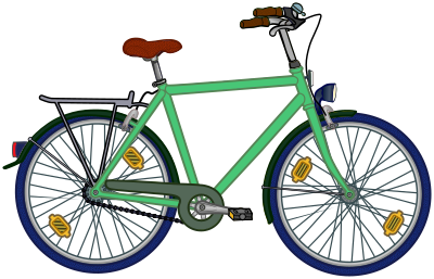 Drawn roadworthy bike for road safety education.The rear reflector is missing.