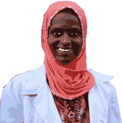 An Ethiopian woman in a pink hijab (based on a public domain US Government image, by the way.)