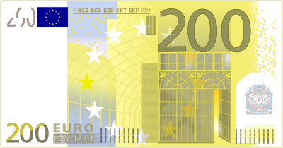 200 Euro bill from https://commons.wikimedia.org/wiki/File:200-Euro.svg