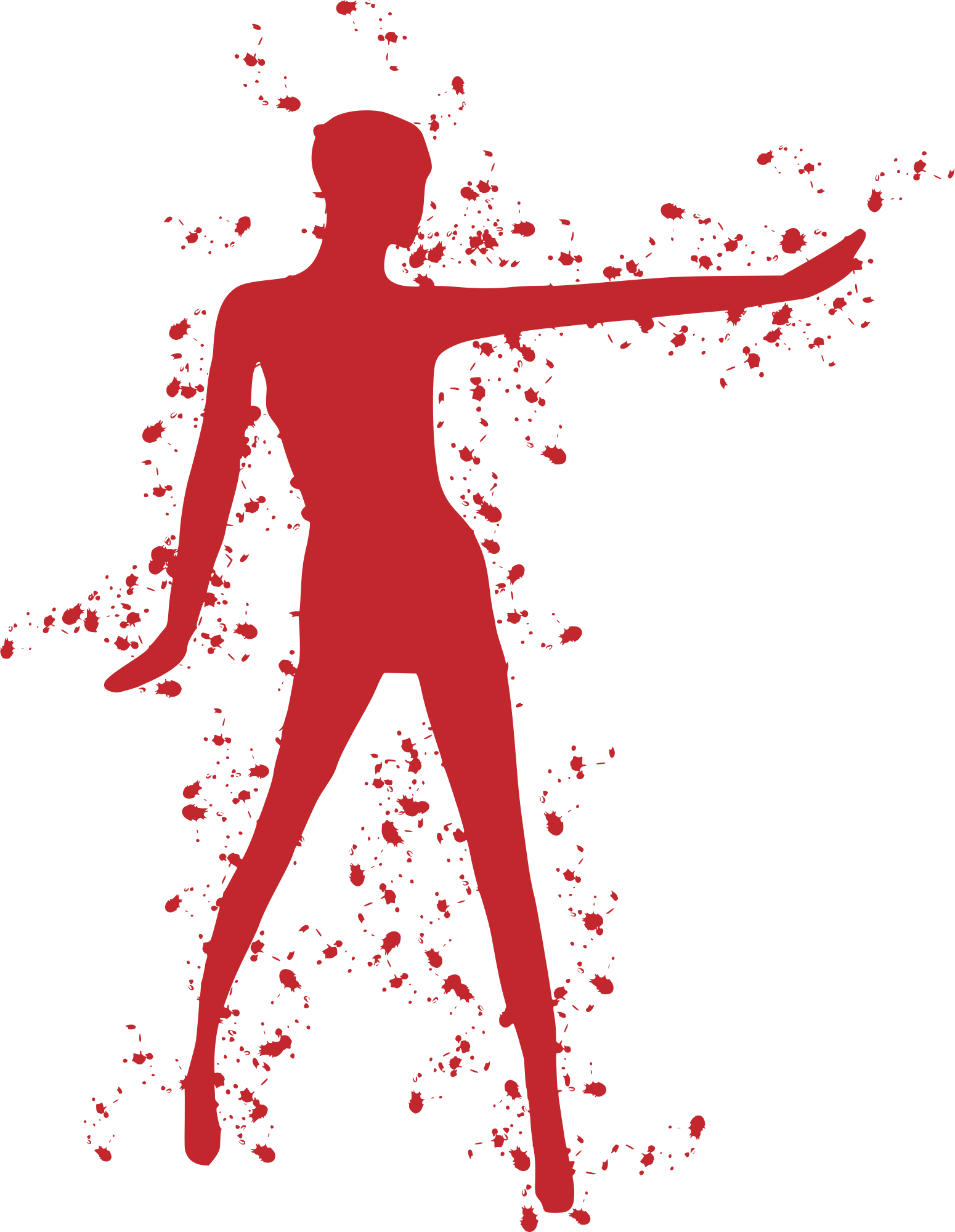 Red paint splatter silhouette of a woman.