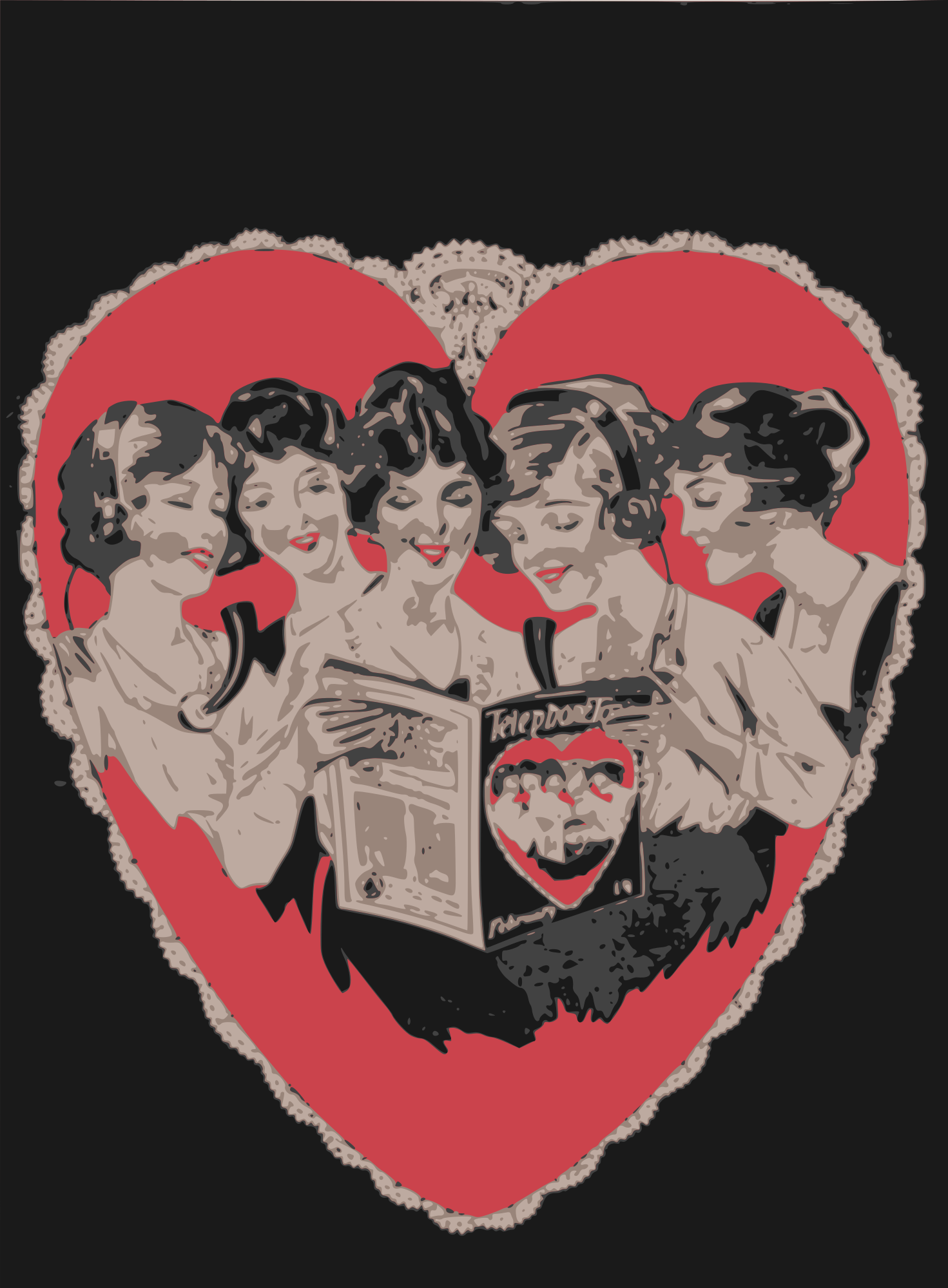 romance Valintines Day phonebook operator phone telephone retro vintage card greeting holiday 1920s 1921 woman female women five