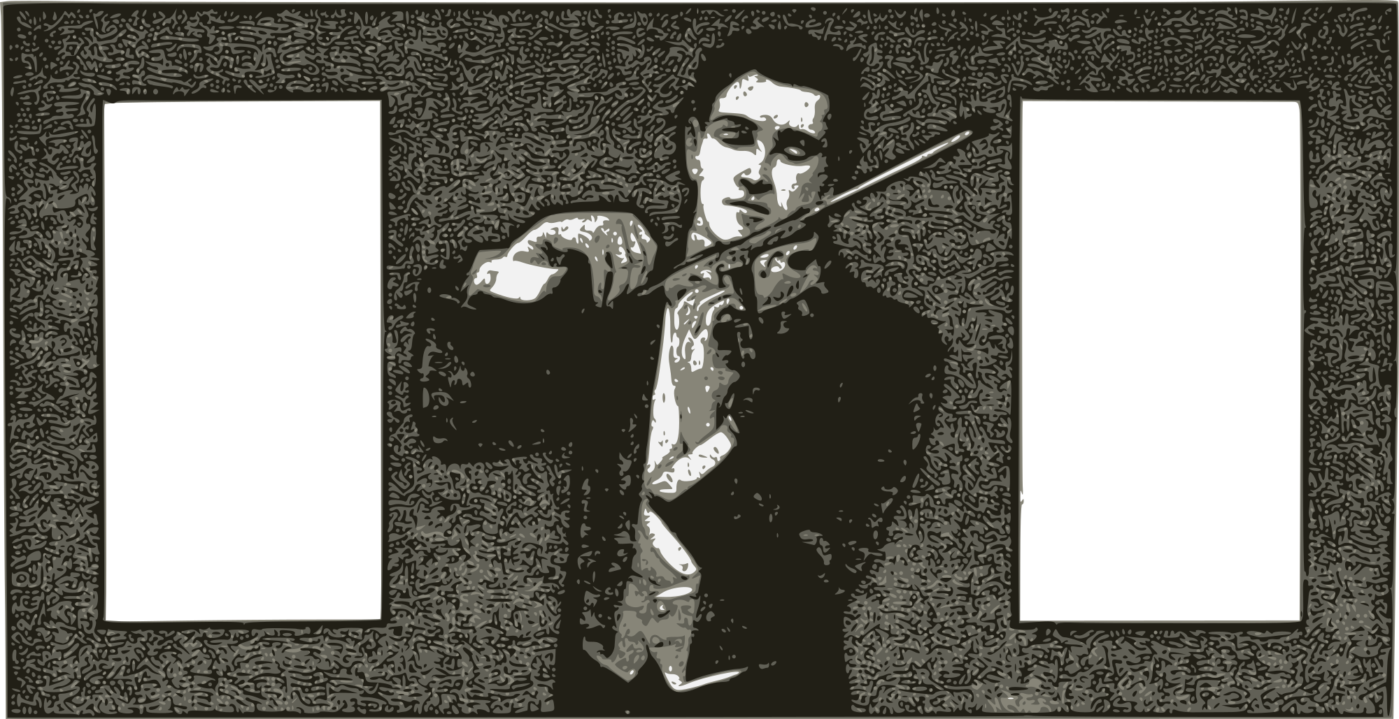 a man having a good time playing a violin.... and a double frame wooooh!