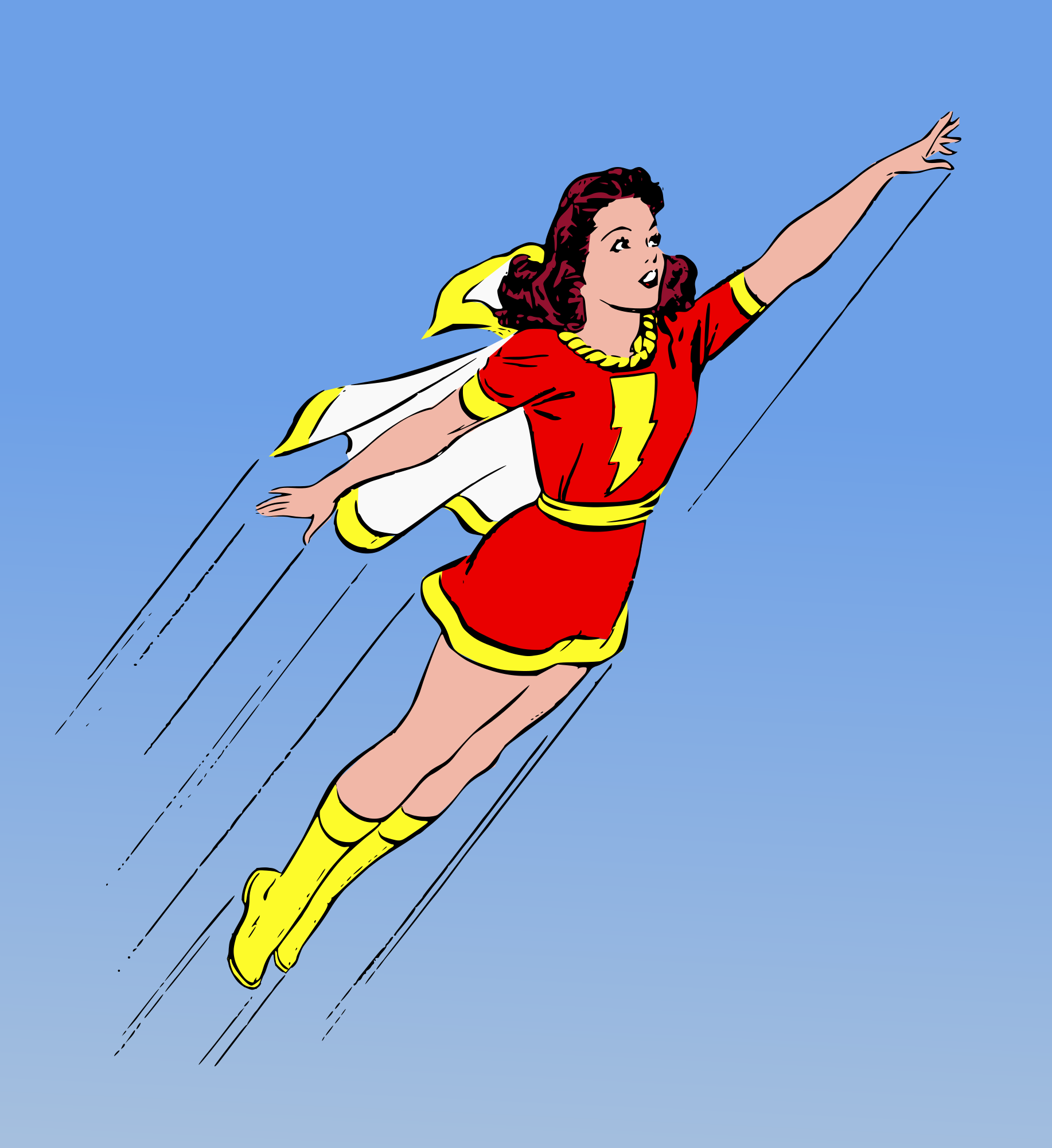 - superhero heroine superheroine hero comic female woman girl flying cape retro