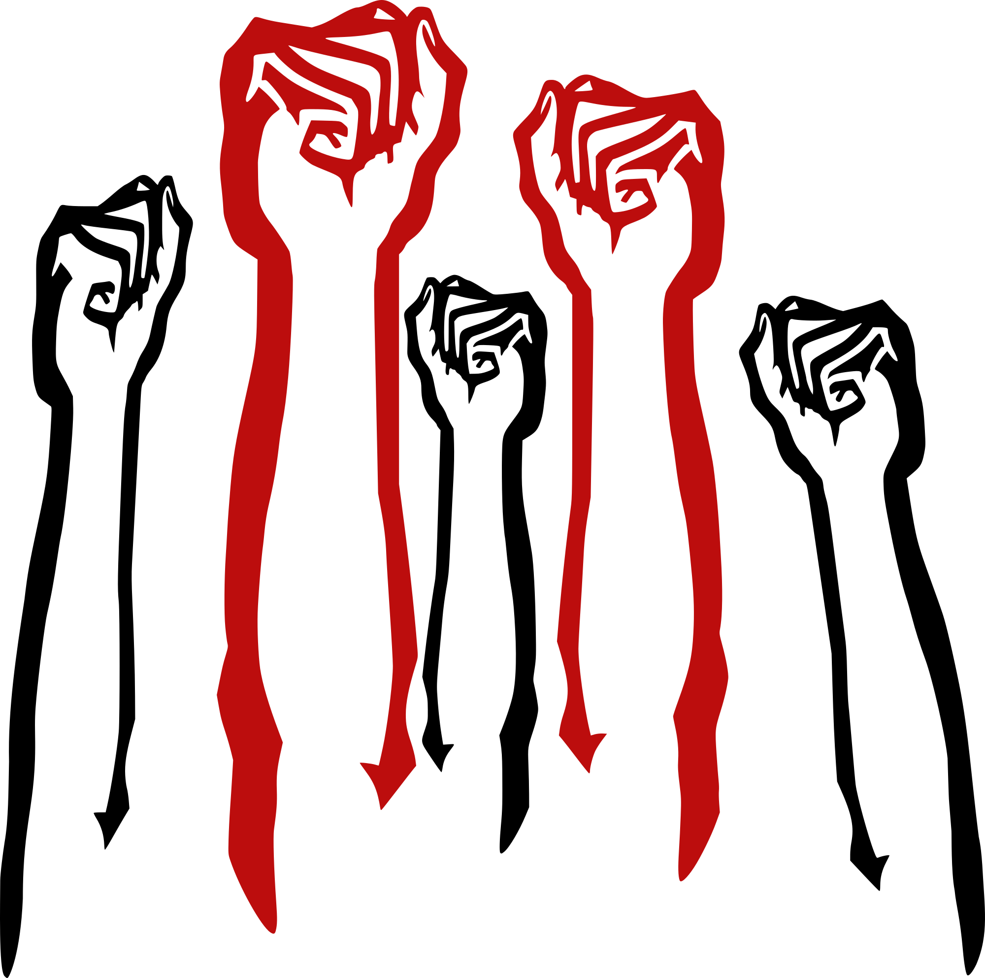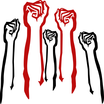 Raised fists in black and red.